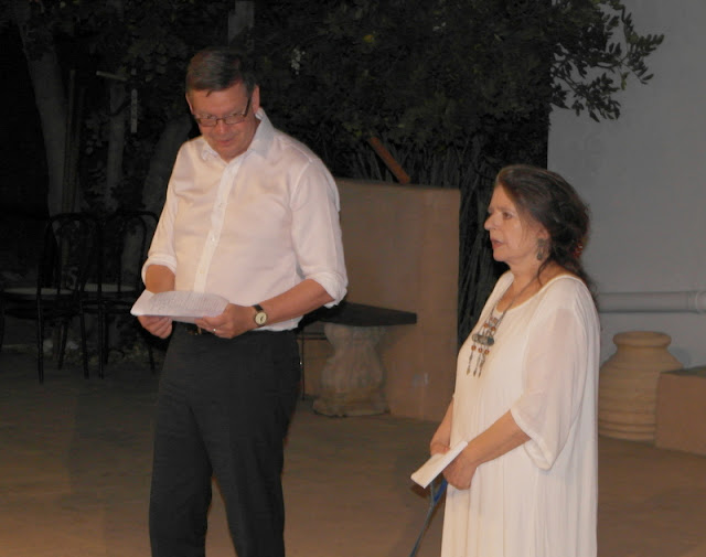 Το βράδυ της Πέμπτης 13 Ιουλίου 2017 παρακολουθήσαμε μια εξαιρετική θεατροχορευτική βραδιά, αφιέρωμα του HYDRAMA στο θέατρο του Βλυχού. Η βραδιά ήταν αφιερωμένη στον αγαπημένο τραγουδοποιό Leonard Cohen, που έζησε και εμπνεύστηκε γράφοντας μεγάλες επιτυχίες στην Ύδρα. Την θεατροχορευτική βραδιά αφιέρωμα στον αγαπημένο τραγουδοποιό Leonard Cohen άνοιξε με χαιρετισμό η κ. Corinna Seeds και ο Πρέσβης του Καναδά κ. Keith Morrill. Η παράσταση ήταν μια πρόσχαρη, διασκεδαστική θεατρική απόδοση με ιδιαίτερη ματιά στη ζωή του αξέχαστου Leonard Cohen στην Ύδρα τη δεκαετία του '60 στην Ύδρα όπου ο Leonard Cohen ανακάλυψε τον ελληνικό τρόπο ζωής. Στο νησί άρχισε να αποκρυσταλλώνει τη σοφία των καλύτερων του ποιημάτων και να γράφει σπουδαία τραγούδια και να γράφει μερικά από τα ωραιότερα τραγούδια του όπως «So Long, Marianne» και «Bird on the Wire». Αυτά τα χρόνια της ζωής του μεγάλου τραγουδοποιού μας μετέφεραν οι 16 χορευτές και ηθοποιοί Καναδοί φοιτητές του Πανεπιστημίου Ryerson (Ryerson Theatre), μέσα από την πανέμορφη παράσταση που παρακολουθήσαμε. Μετά το τέλος της παράστασης ο Δήμαρχος Ύδρας σε ομιλία του ευχαρίστησε και έδωσε συγχαρητήρια τους ερμηνευτές της παράστασης, αναφέρθηκε στην επικείμενη αδελφοποίηση της Ύδρας και της πόλης Μόντρεαλ του Καναδά και παρέδωσε τιμητικές πλακέτες στην κ. Corinna Seeds, την σκηνοθέτη κ. Peggy Shannon αλλά και τον φοιτητή-ηθοποιό που ενσάρκωσε τον Leonard Cohen στη θεατρική απόδοση. Μεταξύ των καλεσμένων που τίμησαν με την παρουσία τους την θεατρική εκδήλωση ήταν ο Δήμαρχος Ύδρας κ. Γεώργιος Κουκουδάκης, ο Πρέσβης του Καναδά κ. Keith Morrill, ο δημοτικός σύμβουλος (εντεταλμένος επί των πολιτιστικών του Δήμου Ύδρας), κ. Π. Ράππας, ο Πρόεδρος της Αδελφότητας Υδραίων Αθηνών κ. Ι. Σαχίνης, ο Πρόεδρος της Κινηματογραφικής Λέσχης Ύδρας κ. Ε. Χρηστίδης, και εκατοντάδες θεατές που είχαν γεμίσει ασφυκτικά το θέατρο του Βλυχού. ΠΛΗΡΟΦΟΡΙΕΣ ΤΗΣ ΘΕΑΤΡΙΚΗΣ ΠΑΡΑΣΤΑΣΗΣ «Ο ΛΕΟΝΑΡΝΤΟ ΜΑΣ» Στο HYDRAMA THEATRE της Ύδρας . Μια πρόσχαρη και διασκεδαστική ματιά στην ζωή του Λέοναρντ Κοέν στην Ύδρα την δεκαετία του 60’. Χοροθεατρική παράσταση. Σκηνοθέτης: Peggy Shannon Διασκευή: Corinna Seeds Χορογραφία: Alyssa Martin 16 Χορευτές και ηθοποιοί από τον Καναδά (Ryerson Theatre) OUR LEONARDO A lively look into Leonard Cohen’s time in Hydra in the 1960s through the lens of theatre and dance. Director: Peggy Shannon Conception: Corinna Seeds Choreography: Alyssa Martin Presented by 16 talented young actors and dancers from the Ryerson Theatre from Canada. http://hydraspoliteia.blogspot.gr/2017/07/blog-post_14.html?spref=fb