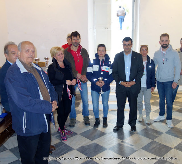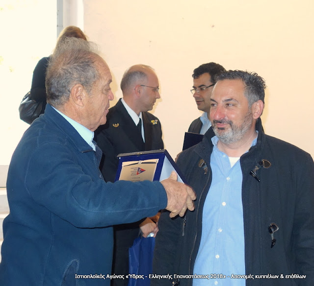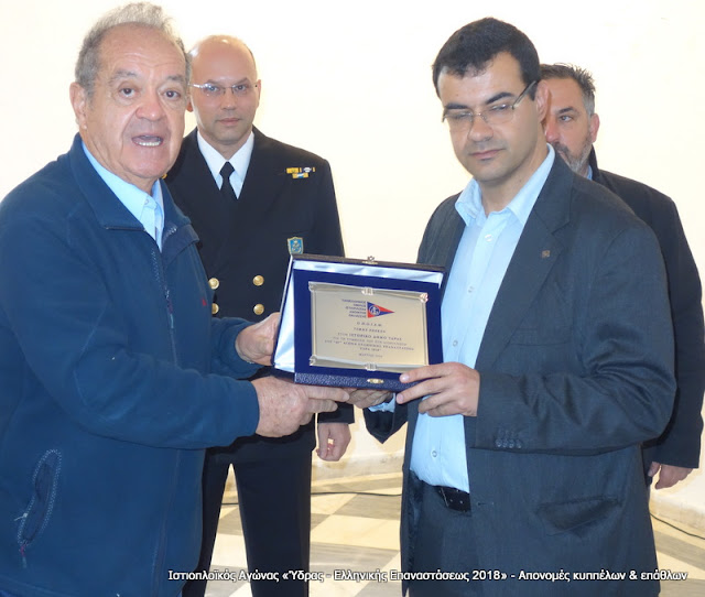 Το Σάββατο 24 Μαρτίου 2018 και λίγο μετά τις 13:00 πραγματοποιήθηκε στην κατάμεστη αίθουσα «Μελίνα Μερκούρη» η απονομή των κυπέλλων και των επάθλων στους νικητές του Ιστιοπλοϊκού Αγώνα «Ύδρας - Ελληνικής Επαναστάσεως 2018».