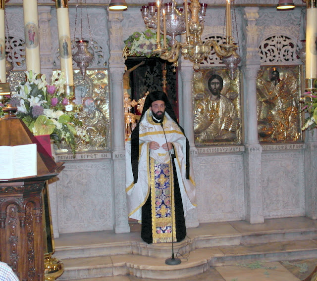 Λίγο πριν την λιτάνευση μίλησε στο εκκλησίασμα ο Πανοσ. Αρχιμανδρίτης π. Νεκτάριος Δαρδανός όπου μεταξύ άλλων μετέφερε το χαρμόσυνο άγγελμα της απελευθέρωσης των δύο Ελλήνων στρατιωτικών που κρατούνταν σε φυλακές της γείτονος χώρας.