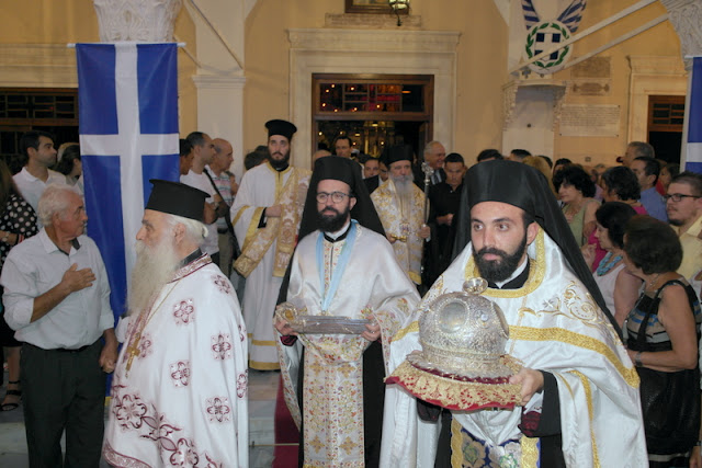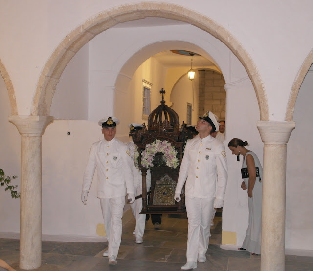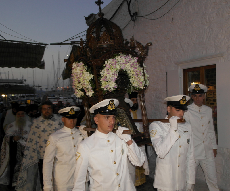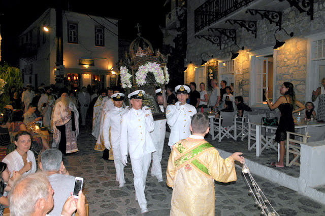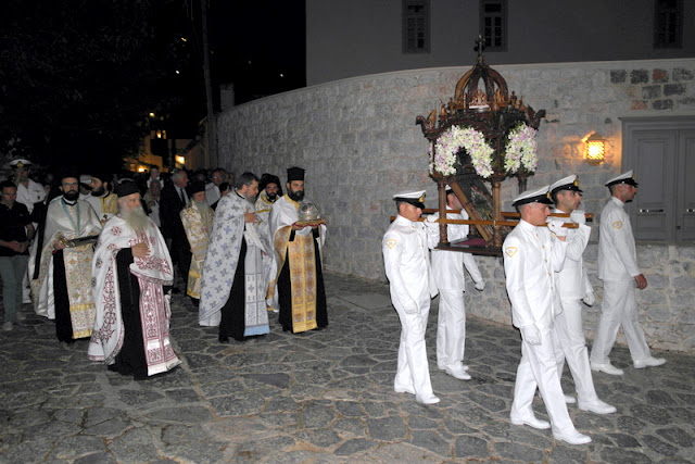 Με ιδιαίτερη λαμπρότητα αλλά και κατάνυξη πραγματοποιήθηκε ο Μέγας Πανηγυρικός Εσπερινός και η Περιφορά της Θαυματουργής Εικόνας της Παναγίας «Φανερωμένης» του Ιερού Καθεδρικού Ναού της Ύδρας μετά της μυροβόλου Ι. Κάρας του Αγίου Κωνσταντίνου του Υδραίου - Εκατοντάδες κόσμου συμμετείχαν με θρησκευτική ευλάβεια και ιδιαίτερη κατάνυξη στις εορταστικές εκδηλώσεις στον εορτασμό της Κοιμήσεως της Θεοτόκου στο νησί μας.