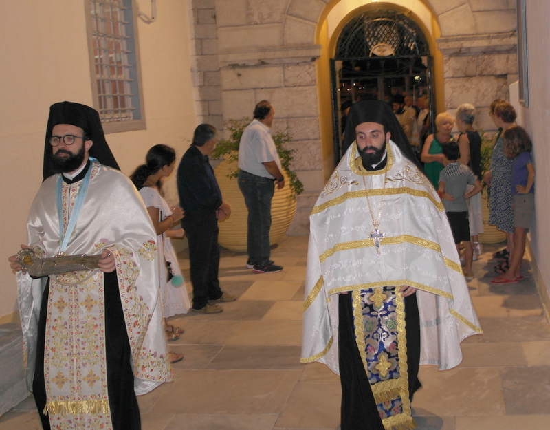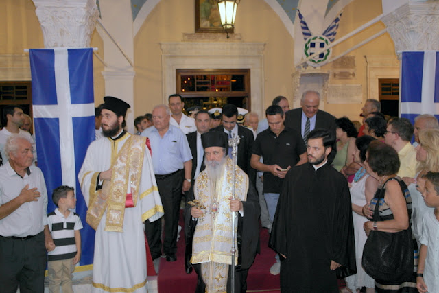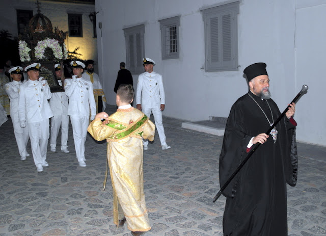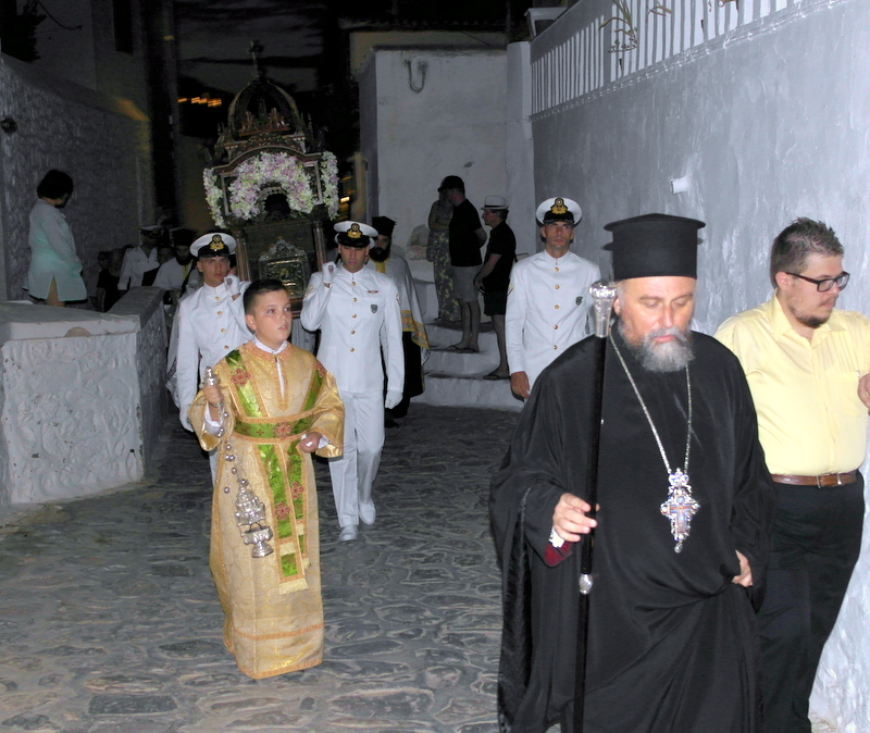 Νωρίτερα τελέστηκε Μέγας Πανηγυρικός Εσπερινός στον Ι. Καθεδρικό Ιερό Ναό Κοιμήσεως Θεοτόκου Ύδρας χοροστατούντος του Σεβασμιότατου Μητροπολίτου Ύδρας, Σπετσών και Αιγίνης κ.κ. Εφραίμ με την παρουσία του Αιδεσ. Πρωτοπρεσβύτερου π. Ακίνδυνου Δαρδανού Γενικού Αρχιερατικού Επίτροπου μαζί με τον Ιερό Κλήρο του νησιού.
