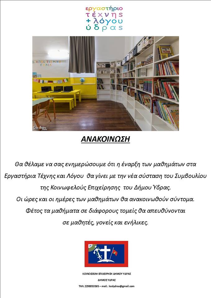 Πρόσκληση σε έκτακτη και κατεπείγουσα Συνεδρίαση του Δημοτικού Συμβουλίου Ένταξη στο Δυναμικό του Δήμου μας και Ορκωμοσία για τρία ακόμα (03) νέα στελέχη! Από τη συνάντηση μας με την Πρόεδρο του ΕΟΤ κ. Άντζελα Γκερέκου για την καλύτερη τουριστική προβολή της Ύδρας