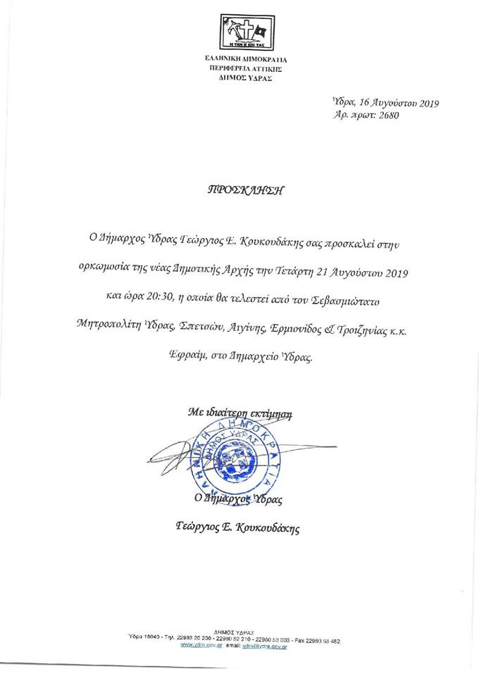 Πλημμύρισε τέχνη και μουσική η Ύδρα: «Μάγεψαν» το κοινό ο Νίκος Στεφάνου και η Varduhi Khachatryan Μια σημαντική πρωτοβουλία δωρεάς του Εικαστικού Αλέξη Βερούκα στο Κουλούρειο Νοσοκομείο Ύδρας Δήμαρχος Ύδρας κ. Γ. Κουκουδάκης: “Ευχαριστώ από καρδιάς τον Μητροπολίτη μας για τον καθημερινό Του αγώνα για την εύρυθμη και σωστή λειτουργία του Νοσοκομείου μας“