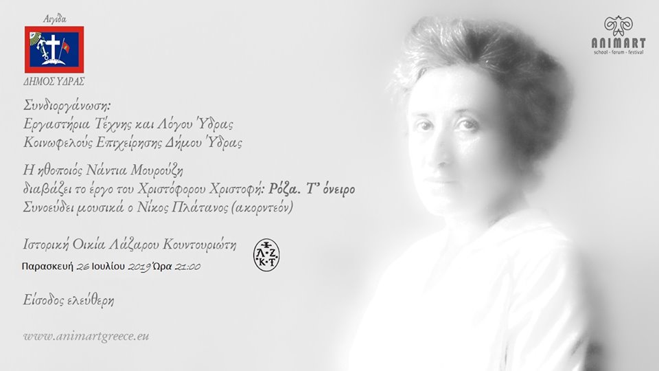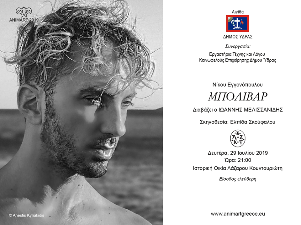Ο Ιωάννης Μελισσανίδης διαβάζει Μπολιβάρ του Νίκου Εγγονόπουλου την Δευτέρα 29 Ιουλίου 2019 και ώρα 21.00 Συναυλία τζαζ Μουσικά Σύνολα την Κυριακή 28 Ιουλίου και ώρα 21.00 στο Ανοικτό Θέατρο στο Καμίνι Ο Ιωάννης Μελισσανίδης μιλά στην Ελένη Χριστοδούλου για την Ύδρα και την εκδήλωση Μπολιβάρ