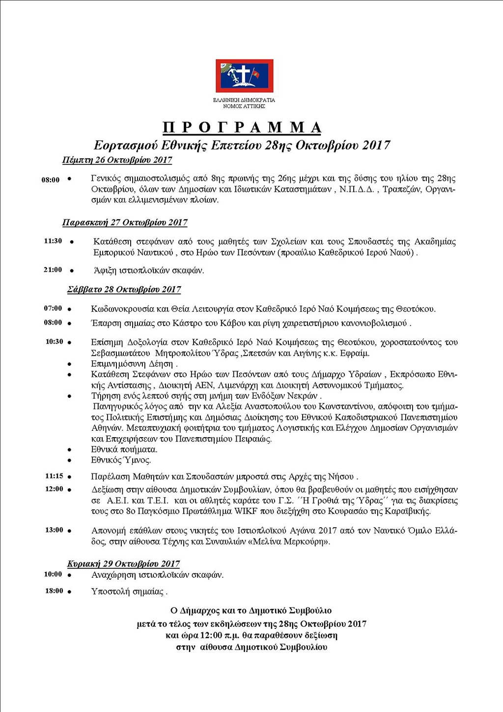 Συνάντηση του Δημάρχου Ύδρας με τον Γενικό Γραμματέα του Ελληνικού Οργανισμού Τουρισμού (ΕΟΤ) κ. Κωνσταντίνο Τσέγα Εγκρίθηκε από το Υπουργείο Εμπορικής Ναυτιλίας η δρομολόγηση του Flying Cat 5 από Πειραιά για Πόρο, Ύδρα, Σπέτσες και Πόρτο Χέλι, μέχρι τις 17/12/2017 Η φωτισμένη Ακαδημία Εμπορικού Ναυτικού Ύδρας, ένα ιστορικό κτίριο και σύμβολο της Ναυτικής Ύδρας