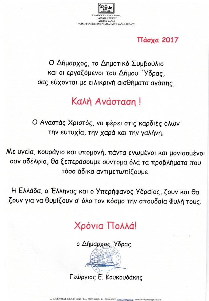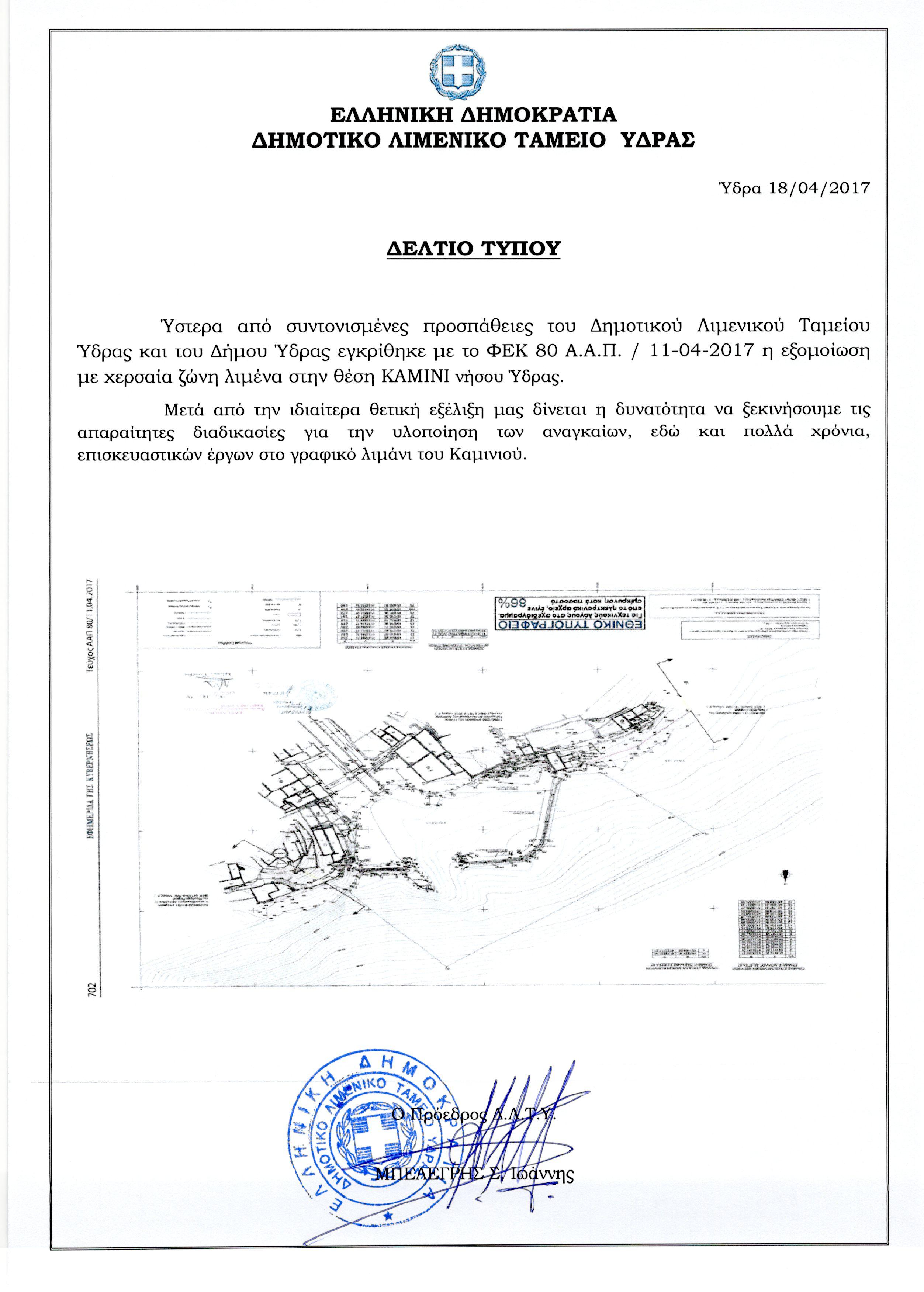 Το Hydra trail event στα Μ.Μ.Μ Εγκρίθηκε η εξομοίωση με χερσαία ζώνη λιμένα στη θέση Καμίνι Το λαμπρό Πάσχα της Ύδρας - Αναστάσιμη Θεία Λειτουργία με το Άγιο Φως