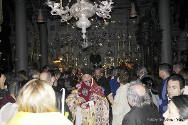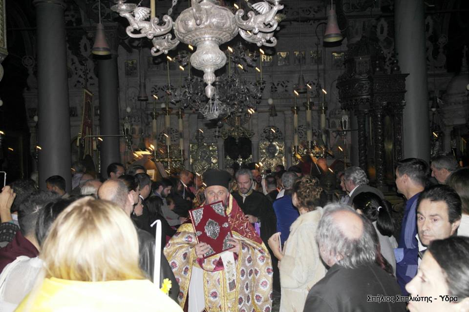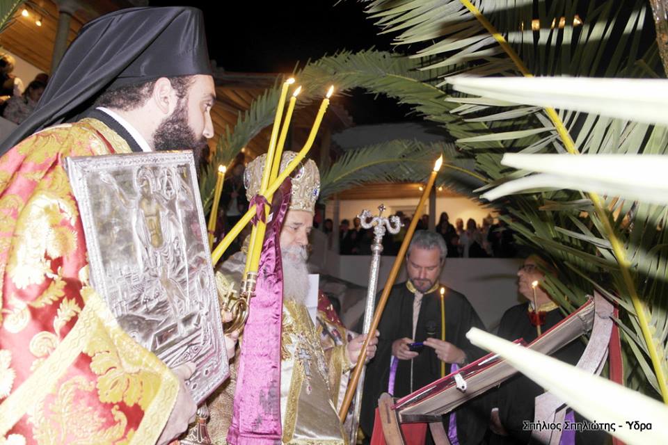 Με ανοιξιάτικο καιρό και μέσα σε θρησκευτική ευλάβεια και ιδιαίτερη λαμπρότητα τελέστηκε στο προαύλιο του Ιερού Καθεδρικού Ναού Κοιμήσεως Θεοτόκου Ύδρας η Ακολουθία της Αναστάσεως προεξάρχοντος του Σεβασμιότατου Μητροπολίτη Ύδρας, Σπετσών, Αιγίνης κ.κ. Εφραίμ και μαζί του συλλειτουργούσαν ο Αιδεσ Πρωτοπρεσβύτερος  π. Ακίνδυνος Δαρδανός, ο Ιερολογιώτατος Αρχιδιάκονος της Ι. Μητροπόλεως π. Νεκτάριος Δαρδανός και ο Διάκονος π. Κωνσταντίνος Μπαρμπέρης.