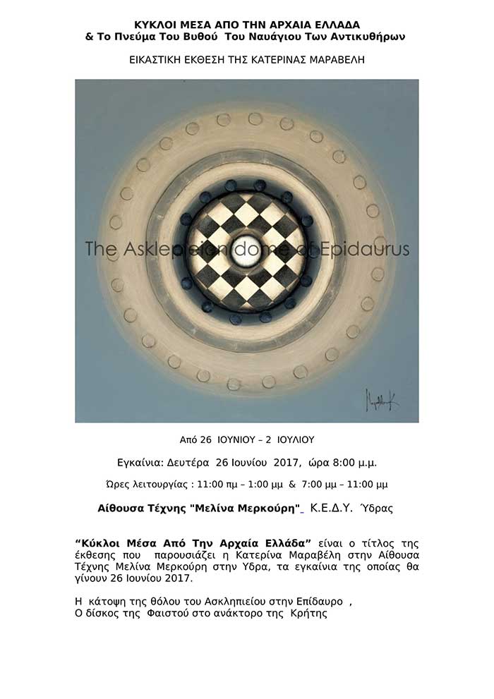 Κύκλοι μέσα από την Αρχαία Ελλάδα, στην έκθεση της Κατερίνας Μαραβέλη στην Ύδρα (22/06/2017) |