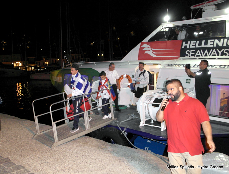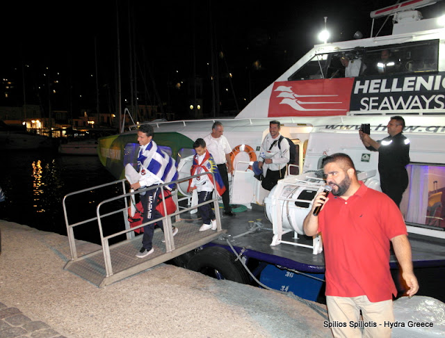 Εξαιρετικός ο τελετάρχης και μέλος του Συλλόγου "Η Γροθιά της Ύδρας" κ. Εμ. Ε. Πούλος κατά την διάρκεια της υποδοχής.