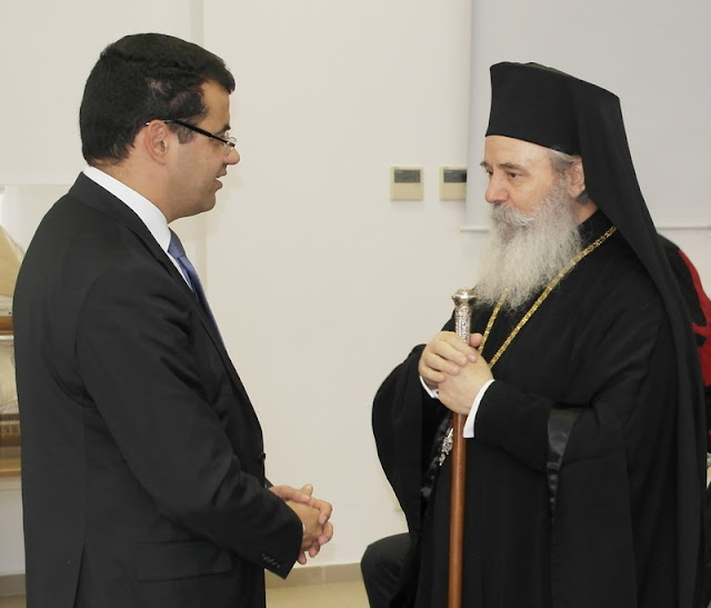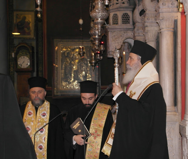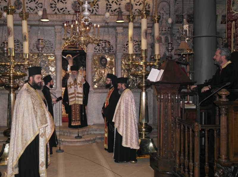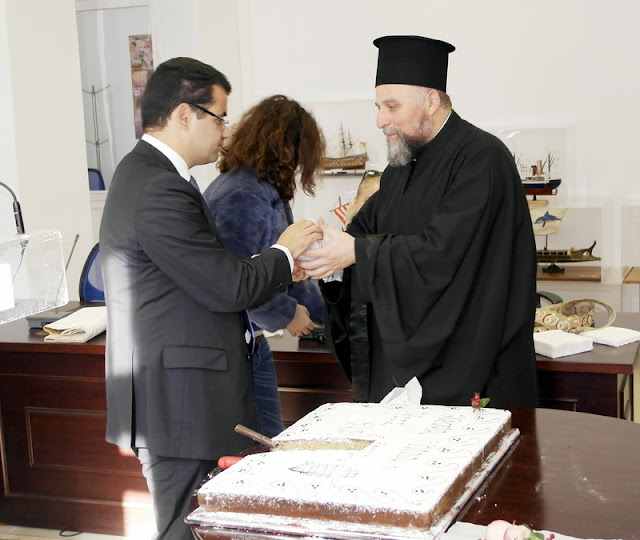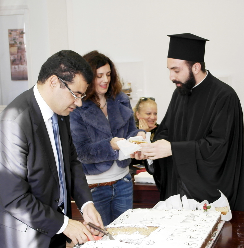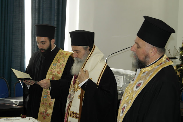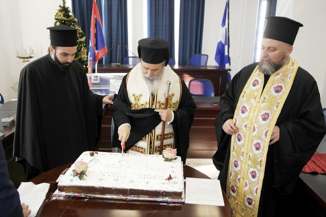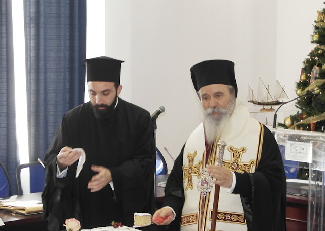 Την πίτα ευλόγησε ο Σεβασμιότατος Ποιμενάρχης μας κ.κ. Εφραίμ μετά του Γενικού Αρχιερατικού Επιτρόπου Αιδεσ. Πρωτ. π. Ακίνδυνου Δαρδανού και του Ιερολογιώτατου Αρχιδιακόνου της Μητροπόλεως π. Νεκταρίου Δαρδανού Ο Σεβασμιότατος Μητροπολίτης μας κ.κ. Εφραίμ μετά την ευλογία της πίτας εκφώνησε πατρικό λόγο προς τους παριστάμενους αναφερόμενος στο έθιμο -του από αρχαιοτάτων χρόνων- της νέας αρχής όπως η Πρωτοχρονιά, η Δοξολογία για κάθε αρχή, η κοπή της πίτας του νέου έτους, που όπως είπε είναι δομικό στοιχείο της κοινωνίας που εμπεριέχει την αναφορά στην ευλογία από τον Θεό του κάθε νέου ξεκινήματος και είναι ένα έθιμο της ψυχής μας που ζητάμε από τον ίδιο το Χριστό να το ευλογήσει. Επίσης στην ομιλία του αναφέρθηκε στην ανάληψη των ευθυνών μας, που όπως είπε, πρέπει όλοι μας να αναλάβουμε τις ευθύνες μας για να πάει μπροστά η κοινωνία και κατέληξε ευχόμενος χρόνια πολλά και καλή χρονιά και ακολούθως έκοψε τα πρώτα κομμάτια της πίτας.