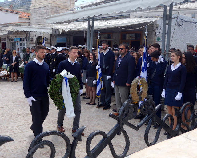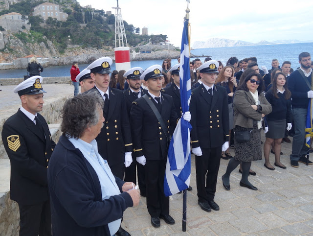 Ημέρα μνήμης και τιμής για τους ήρωες της Επαναστάσεως και της εθνικής μας ανεξαρτησίας του 1821, σήμερα Παρασκευή, 23 Μαρτίου 2018 στο νησί μας. Οι μαθητές της πρωτοβάθμιας και δευτεροβάθμιας εκπαίδευσης των Σχολείων της Ύδρας και οι Σπουδαστές της Ακαδημίας Εμπορικού Ναυτικού συνοδευόμενοι από το εκπαιδευτικό προσωπικό των Σχολείων και της Ακαδημίας κατέθεσαν στεφάνια στις προτομές των ηρώων της Ύδρας εντός του προαυλίου χώρου του Καθεδρικού Ναού της Ύδρας αλλά και σε άλλα σημεία του νησιού. Νωρίτερα στα σχολεία της Ύδρας είχαν προηγηθεί εορταστικές εκδηλώσεις με αναφορά την ιστορική μνήμη της επετείου της 25ης Μαρτίου και στην συνέχεια οι μαθητές και οι σπουδαστές της ΑΕΝ Ύδρας κατέθεσαν στεφάνια στις προτομές των Ηρώων. https://hydraspoliteia.blogspot.gr/2018/03/blog-post_84.html?spref=fb |