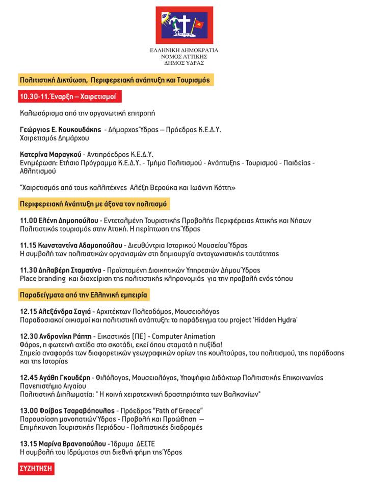 Η Διαχείριση και η Ανάδειξη της υλικής και άυλης πολιτιστικής κληρονομιάς ενός τόπου Ύδρα 2018 (14/06/2018) |