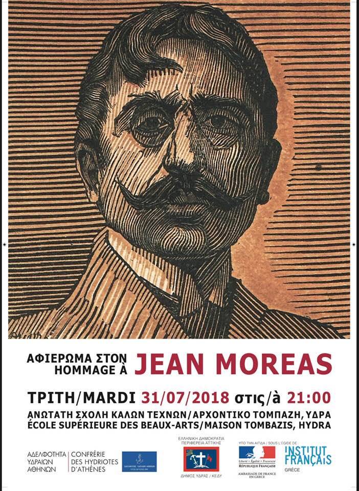 Την Τρίτη 31 Ιουλίου στις 20.30 η Αδελφότης Υδραίων Αθηνών διοργανώνει αφιέρωμα στον Γάλλο συμβολιστή ποιητή Ζαν Μορεάς - Ιωάννη Παπαδιαμαντόπουλο, στο παράρτημα της ΑΣΚΤ που ήταν το αρχοντικό των προγόνων του Εμμανουήλ Τομπάζη και Ξανθής Σαχίνη, με τη συμμετοχή μελών της οικογένειάς του.