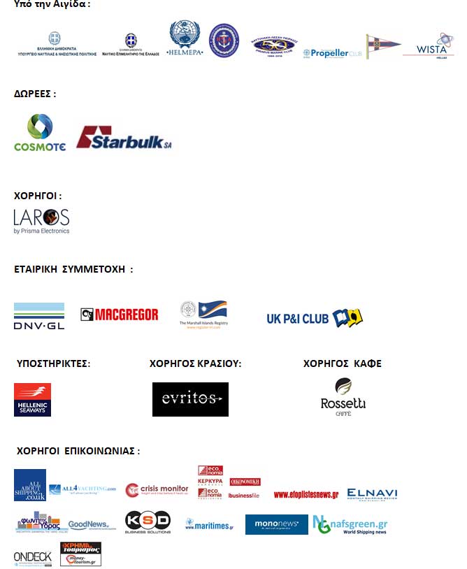 Επιβεβαιωμένοι Ομιλητές Γεώργιος Δ. Πατέρας Πρόεδρος, Ναυτικό Επιμελητήριο της Ελλάδος, Διευθύνων Σύμβουλος της Aegeus Shipping S.A. Ελένη Θανοπούλου Καθηγήτρια στη Λειτουργική Διοίκηση Ναυτιλιακών Επιχειρήσεων στο Τμήμα Ναυτιλίας, και Επιχειρηματικών Υπηρεσιών του Πανεπιστημίου Αιγαίου Αντώνης Μαυρακάκης
