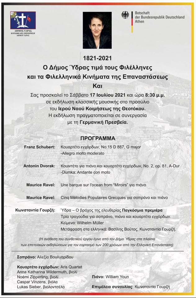 Στις 4 Ιουλίου του 1822, 17 Ιουλίου με το παλαιό, δίνεται από τους εξεγερμένους Έλληνες η μάχη του Πέτα που καταλήγει σε δεινή ήττα των Ελλήνων. Είναι μια μάχη που έμεινε στην ιστορία για πολλούς λόγους. Ένας από τους οποίους, ίσως ο σημαντικότερος, είναι και ότι σε αυτή πήρε μέρος και ένα τάγμα Φιλελλήνων από πολλές διαφορετικές χώρες της Ευρώπης, Γερμανοί, Ιταλοί, Γάλλοι, Ελβετοί, Βέλγοι, Ολλανδοί, Δανοί, Σουηδοί, Πολωνοί. Πολλοί απ’ αυτούς έχασαν την ζωή τους στο πεδίο της μάχης, πολεμώντας ηρωικά αν και περικυκλωμένοι από τους Οθωμανούς. Ιδιαίτερα συγκινεί η ιστορική αναφορά πως ο βαριά πληγωμένος στρατηγός Νόρμαν, επικεφαλής τους τάγματος των Φιλελλήνων, θα πει στον Αλέξανδρο Μαυροκορδάτο μετά το τέλος της μάχης: «Πρίγκηπα, όλα τα χάσαμε, εκτός από την Τιμή». Θα πεθάνει και αυτός μερικές εβδομάδες αργότερα στο Μεσολόγγι που τον μετέφερε ο ίδιος ο Μάρκος Μπότσαρης, εντυπωσιασμένος από την γενναιότητα του. Ο Νόρμαν (Karl Friedrich Lebrecht von Norman-Ehrenfels) υπήρξε γιος Πρωθυπουργού του Βασιλείου της Βυρτεμβέργης, που άφησε πίσω του μια μεγάλη περιουσία για να προσφέρει τις υπηρεσίες του στον μεγάλο σκοπό της απελευθέρωσης της Ελλάδας. Να σημειώσουμε επίσης εδώ, ότι πολλοί από αυτούς πολέμησαν στο πλευρό των Ελλήνων κόντρα στην επίσημη πολιτική των χωρών τους, κάτι που δίνει ιδιαίτερο βάρος και στην θυσία τους. Στα πλαίσια των εκδηλώσεων για να τιμηθούν τα φιλελληνικά κινήματα από τον Δήμο της Ύδρας, όπως τις εισηγήθηκε ένα χρόνο πριν η επιτροπή που σχηματίστηκε για να κάνει προτάσεις για τον εορτασμό των 200 χρόνων από το 1821, γίνεται και η εκδήλωση για τον Γερμανικό Φιλελληνισμό, που ήταν αναμφισβήτητα ο δυναμικότερος στην κεντρική Ευρώπη και χρειάστηκε να κοντραριστεί επιπλέον με την επίσημη πολιτική των Μεγάλων Δυνάμεων και τις πολιτικές προσεγγίσεις του Κλέμενς φον Μέττερνιχ. Ο Δήμος Ύδρας, για να τιμήσει ιδιαίτερα όσους θυσιάστηκαν για μια Ελλάδα Ελεύθερη αλλά και γενικότερα όσους βοήθησαν ενεργά την Ελληνική υπόθεση, σε συνεργασία με την Γερμανική Πρεσβεία στην Αθήνα, ανέθεσε σε μια πολύ διακεκριμένη διεθνώς Ελληνίδα μαέστρο και συνθέτη, την Κωνστάντια Γουρζή, να συνθέσει ένα έργο βασισμένο στην ποίηση του μεγάλου Γερμανού Φιλέλληνα ποιητή Βίλχεμ Μύλλερ που θα παρουσιαστεί σε Παγκόσμια Πρώτη στην Ύδρα, μαζί με έργα άλλων μεγάλων δημιουργών του κλασσικού ρεπερτορίου. Γερμανοί και Έλληνες μουσικοί που ταξιδεύουν στην Ύδρα ειδικά γι’ αυτόν τον σκοπό, θα τα παρουσιάσουν στον Περίβολο του Μητροπολιτικού Ναού. Το έργο που ετοίμασε η Κωνστάντια Γουρζή, με τίτλο ΥΔΡΑ Ο ΒΡΑΧΟΣ ΤΗΣ ΕΛΕΥΘΕΡΙΑΣ, βασίζεται σε τρία ποιήματα από τα πολλά που συνέθεσε ο Βίλχεμ Μύλλερ και αναφέρονται στην Ύδρα και τον ρόλο της στη μεγάλη προσπάθεια των Ελλήνων. Θα παρακαλούσα όλους τους Υδραίους και τους φίλους της Ύδρας, που αντιλαμβάνονται την Ύδρα όχι μόνο σαν τόπο διακοπών αλλά και σαν μια έννοια συνυφασμένη με την έννοια της Ελευθερίας, ακόμα και αν δεν είναι λάτρεις της κλασσικής μουσικής, να περάσουν έστω για λίγο και να τιμήσουν την τόσο μεγάλη θυσία όλων αυτών των ανθρώπων στον βωμό του πανανθρώπινου αυτού αγαθού. Ένα μεγάλο ευχαριστώ στον καλό φίλο Αλέξη Βερούκα για τον σχεδιασμό της αφίσας. Με εκτίμηση, Παναγιώτης Ράππας |