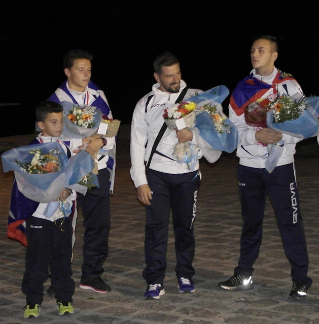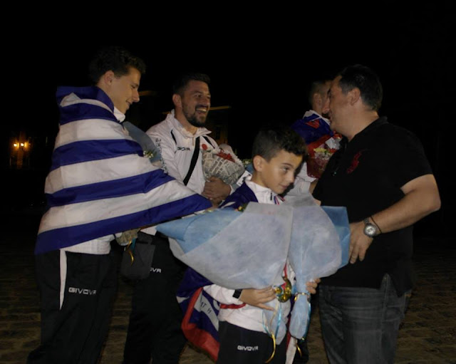 Εξαιρετική εμφάνιση των Υδραίων αθλητών της «Γροθιάς της Ύδρας» στο 19ο Πανευρωπαϊκό Πρωτάθλημα Καράτε που διεξήχθη στο Ρότερνταμ της Ολλανδίας – Εντυπωσιακή και θερμή υποδοχή των αθλητών στην Ύδρα. Ο Άγγελος Πλευρίτης αγωνιζόμενος στο 19ο Πανευρωπαϊκό Πρωτάθλημα WIKF στην κατηγορία kumite κατέκτησε ένα χρυσό μετάλλιο ο Αλέξης Παντέλη ένα χάλκινο στην 3η θέση kumite και ο Ρόπι Σειμένι κατέκτησε την 5η θέση kumite! Εντυπωσιακή και εξαιρετικά θερμή υποδοχή επιφύλαξε το βράδυ της Κυριακής 2 Οκτωβρίου 2016 η νεολαία της Ύδρας αλλά και δεκάδες κόσμου στην προκυμαία του Λιμανιού της Ύδρας, στον Χρυσό Πρωταθλητή Ευρώπης στο Καράτε Άγγελο Ν. Πλευρίτη, τον Αλέξη Παντελή, τον Ρόπι Σειμένι τον δάσκαλό Καράτε κ. Γιάννη Πράπα, τον Πρόεδρο του Γυμναστικού Συλλόγου της Υδραϊκής σχολής καράτε «Η Γροθιά της Ύδρας» κ. Ν. Πλευρίτη, αλλά και στους γονείς που συνόδευαν τους αθλητές. Στη συνέχεια ο δάσκαλος και οι αθλητές δέχθηκαν ανθοδέσμες και τα συγχαρητήρια από τον Αντιδήμαρχο Ύδρα και Πρόεδρο του Δημοτικού Λιμενικού Ταμείου κ. Ι. Μπελεγρή, τον Πρόεδρο της Κοινωφελούς Επιχείρησης Δήμου Ύδρας κ. Ε. Καραμήτσο, την δημοτική σύμβουλο κ. Λ. Λούλου (της οποίας ο χρυσός πρωταθλητής Α. Πλευρίτης είναι γιός της), αλλά και παλιότερων αθλητών της «Γροθιάς της Ύδρας» που είχαν διακριθεί σε διεθνείς αγώνες. Ο δάσκαλος της σχολής Καράτε κ. Γιάννης Πράπας ευχαρίστησε όλους όσους συμμετείχαν στην υποδοχή και όλους όσους βοήθησαν στην πραγματοποίηση της συμμετοχής της «Γροθιάς της Ύδρας» στο Πανευρωπαϊκό Πρωτάθλημα WIKF. Στην υποδοχή παρευρίσκονταν ο Αντιδήμαρχος Ύδρας και Πρόεδρος του Δημοτικού Λιμενικού Ταμείου κ. Ι. Μπελεγρής, ο Πρόεδρος της Κοινωφελούς Επιχείρησης Δήμου Ύδρας κ. Ε. Καραμήτσος, ο Πρόεδρος της Αδελφότητας Υδραίων Αθηνών κ Γ. Σαχίνης, μέλη του διοικητικού Συμβουλίου "Η Γροθιά της Ύδρας" , αθλητές και αθλήτριες του καράτε αλλά και δεκάδες κόσμου. Εξαιρετικός ο τελετάρχης και μέλος του Συλλόγου "Η Γροθιά της Ύδρας" κ. Ε. Πούλος κατά την διάρκεια της υποδοχής. Η αποστολή επέστρεψε στην Ύδρα με ένα χρυσό από τον Άγγελο Πλευρίτη και ένα χάλκινο από τον Αλέξη Παντελή αλλά και την ομάδα Καράτε της Ύδρας στην πέμπτη θέση από το 19ο Πανευρωπαϊκό Πρωτάθλημα της WIKF!!! Συγχαρητήρια στους αθλητές για τις εξαιρετικές τους εμφανίσεις και επιδόσεις αλλά και στον προπονητή Καράτε "Η Γροθιά της Ύδρας" κ. Γιάννη Πράπα. http://hydraspoliteia.blogspot.gr/2016/10/blog-post_43.html |