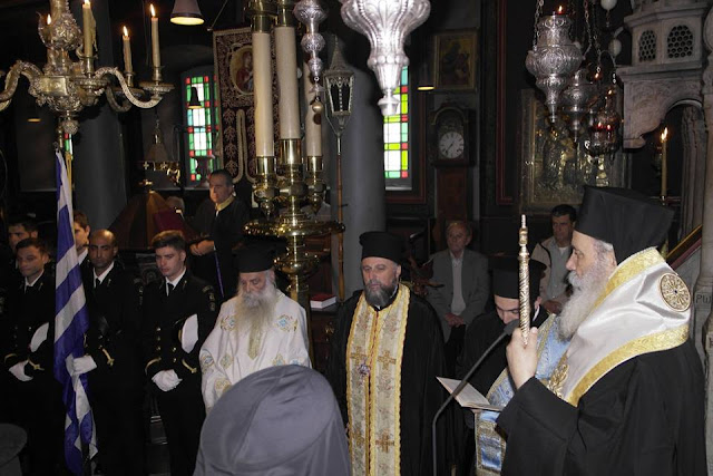 Στη Θεία Λειτουργία αλλά και την Δοξολογία που ακολούθησε χοροστάτησε ο Σεβασμιότατος Μητροπολίτης Ύδρας, Σπετσών και Αιγίνης κ.κ. Εφραίμ συλλειτουργούντων του Αιδεσ. Πρωτοπρεσβύτερου και Γενικού Αρχιερατικού Επιτρόπου π. Ακίνδυνου Δαρδανού, του Πρωτοπρεσβύτερου π. Ιωαννικίου Καλαφάτη, του Πρωτοπρεσβύτερου π. Ευάγγελου Γκιάκου, του Πρεσβύτερου π. Γεώργιου Βλαχόπουλου και του Ιερολογιώτατου Διακόνου της Μητροπόλεως π. Νεκταρίου Δαρδανού.
