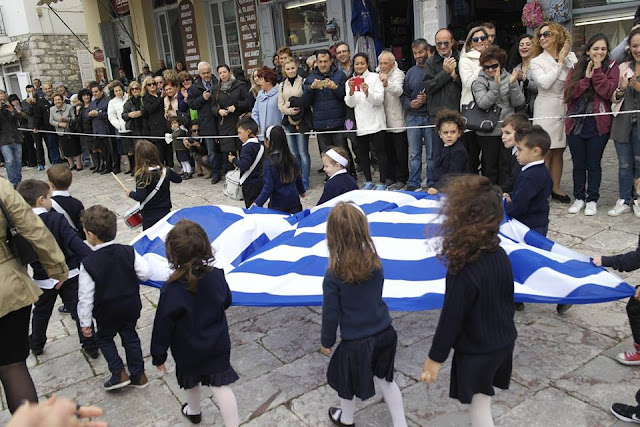 Στη συνέχεια έγινε παρέλαση των μαθητών και σπουδαστών στο λιμάνι μπροστά από τις Πολιτικές και Στρατιωτικές Αρχές του νησιού και του κόσμου. Οι παρελάσεις των Σχολείων και των Σπουδαστών του νησιού απέσπασαν τα θερμά χειροκροτήματα του πλήθους.
